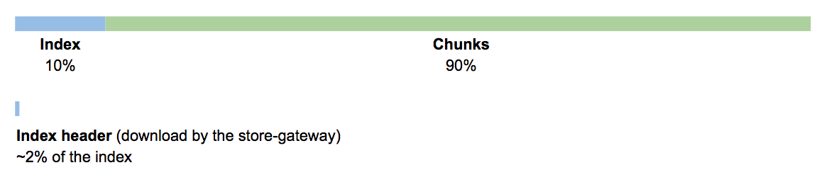 The size of the index-header is not dramatic. In our experience running the blocks storage at scale, the index-header of a 24h compacted block is in the order of 2 percent of the index, or about 0.2 percent of the total block size.