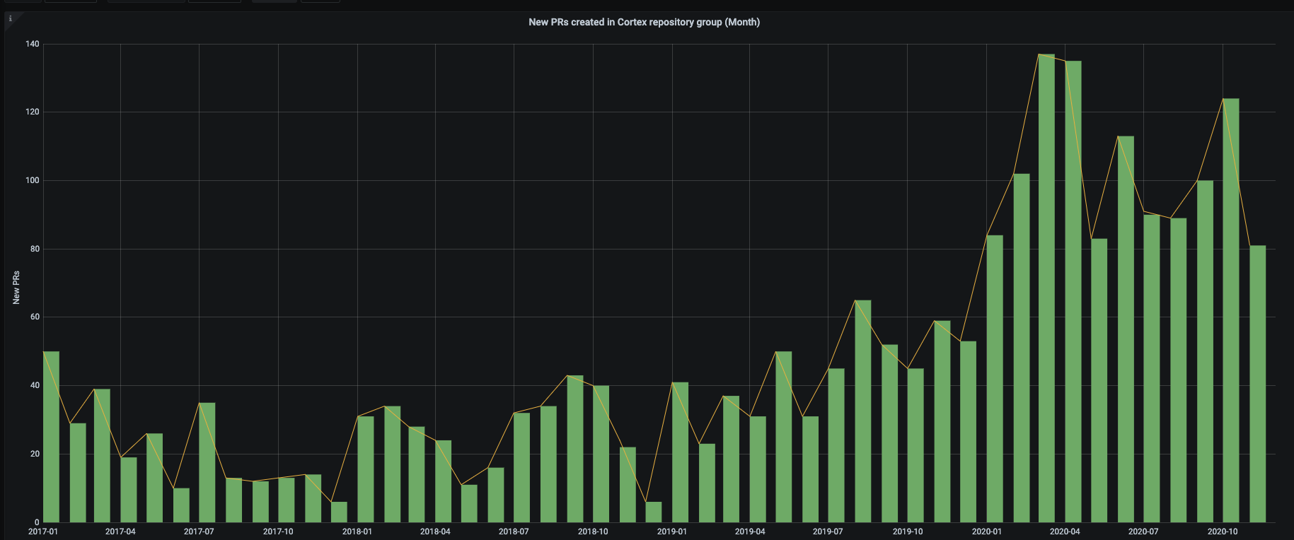 All in all, 2020 has been a fantastic year for Cortex. We are very grateful for all the love shown by the community, and we promise to continue to work on Cortex and make it the most scalable and cost-effective solution to store and query massive amounts of Prometheus metrics.