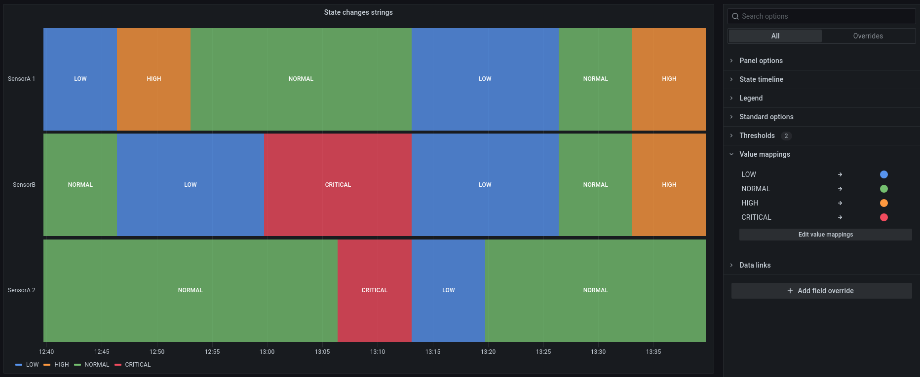 This panel is great for observability and industrial use cases where users need to visualize uptime, SLA conformance, sensor readings, or anything that’s in discrete states over time.