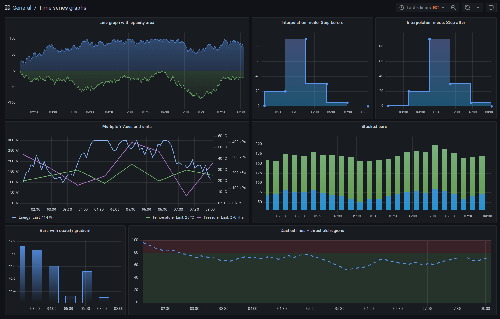 Introduced in Grafana 7.4, the Time series graph panel is now out of beta and the default visualization option. It’s a high-performance visualization that provides users with better performance, more consistency and the ability to customize different aspects of the panel.