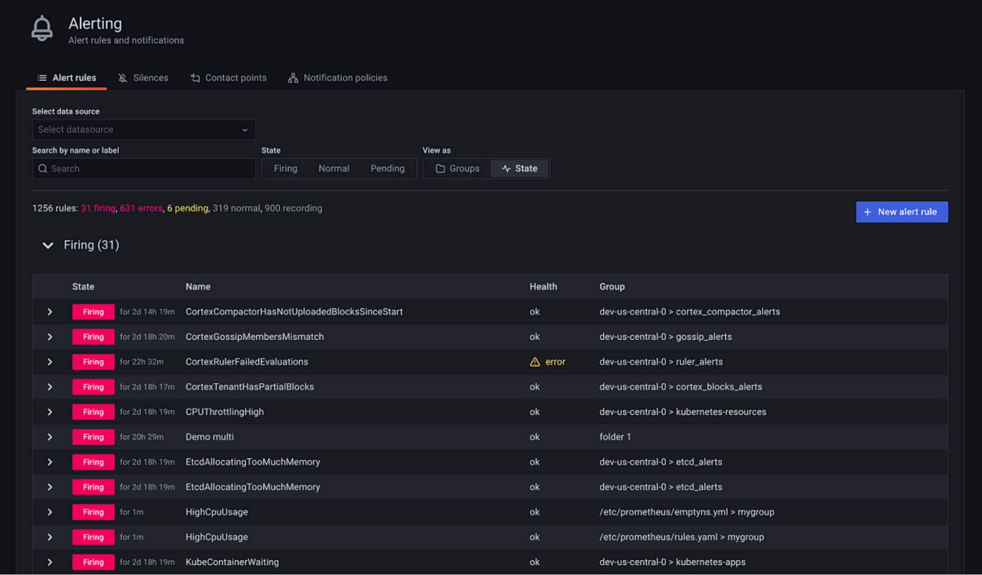 Grafana Alerting is now the default alerting experience in Grafana OSS. All new installations of Grafana 8.3+ will include our next generation Grafana Alerting interface and features. New in v8.3 is the addition of contact point testing. We’ve also included the ability to add external, Prometheus-compatible alert managers into Grafana Alerting, ensuring you have a single view into every critical alert you need. Please see the alerting documentation for more details.