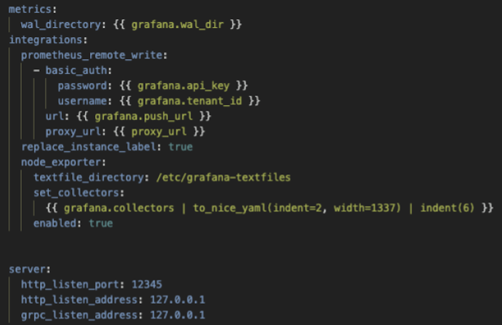 Johnson then moved on to discuss his actual agent configuration and shared this code block from his Ansible repository: