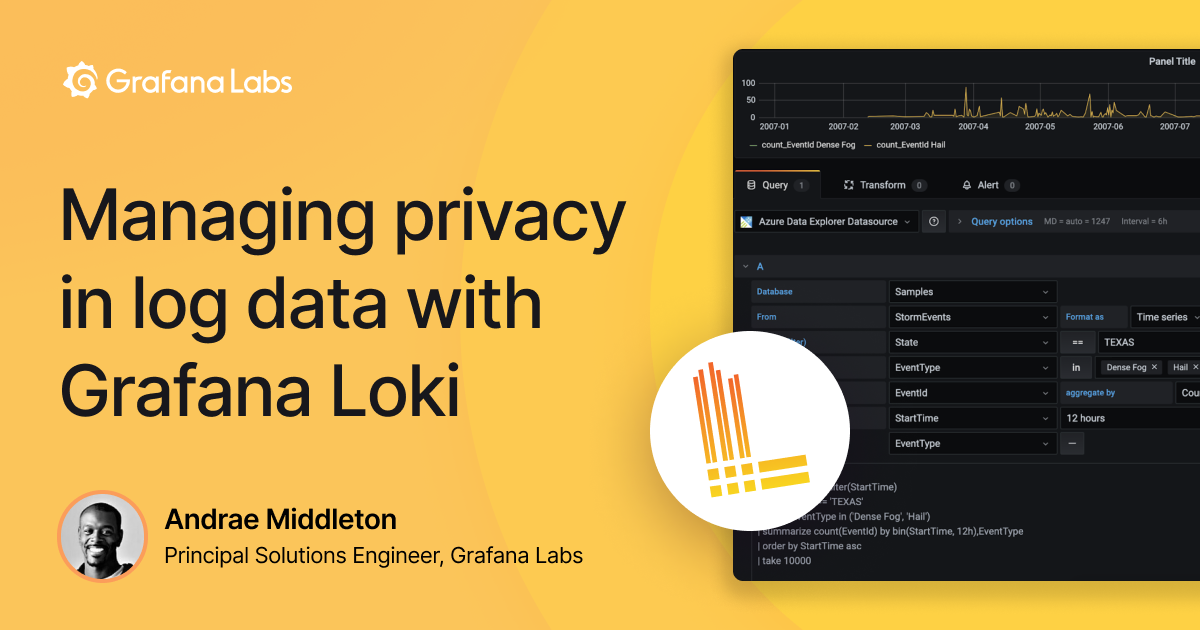 Log aggregation platforms are considered data stores by regulations such as GDPR or CCPA, and therefore must be included in readiness assessment. During this webinar, Grafana Labs technical expert Andrae Middleton will outline how Grafana Loki can help organizations meet these requirements. You’ll also come away with knowledge of how to apply simple privacy techniques to your logs and integrate Loki into your enterprise privacy strategy.
