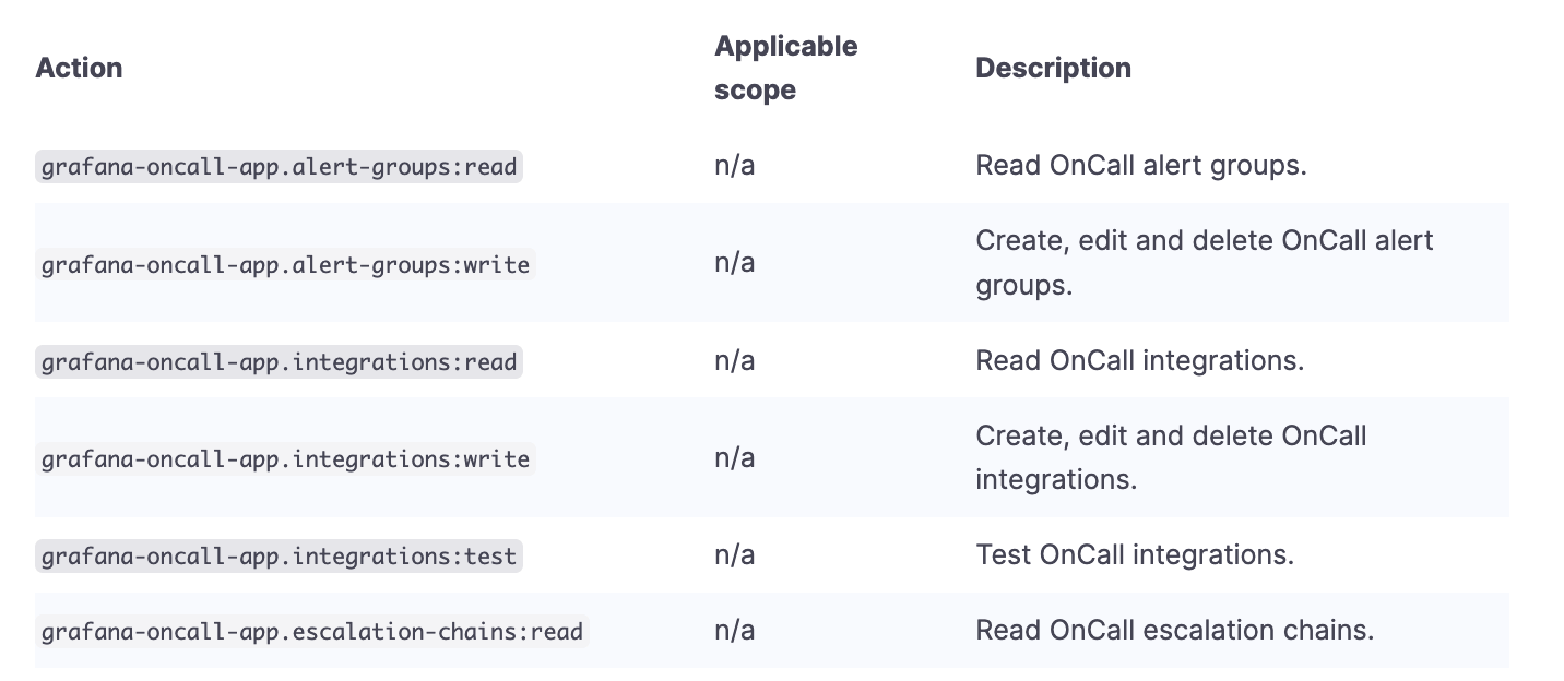 With role-based access control (RBAC) for Grafana OnCall, you can control access to things like who can edit a schedule, an integration, or escalation chain. This provides peace of mind that you can reduce the risk of misconfigurations but still let team members get their core tasks done through more granular access controls.