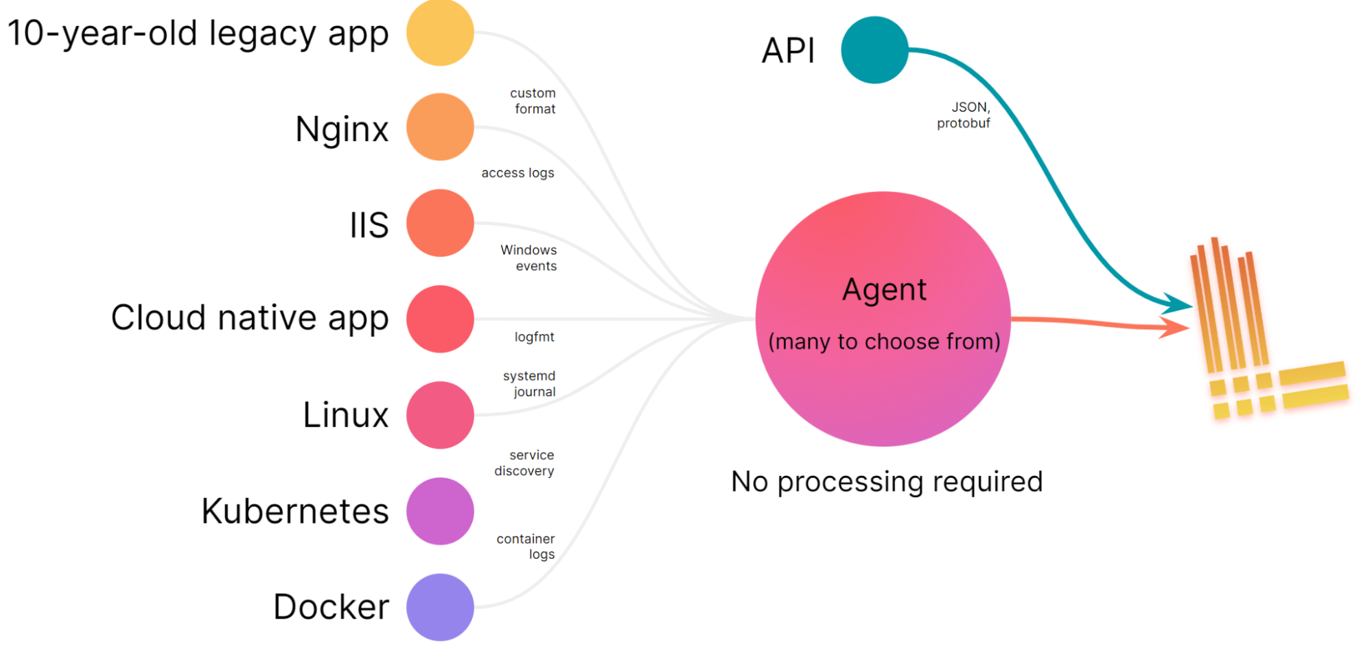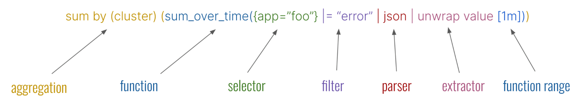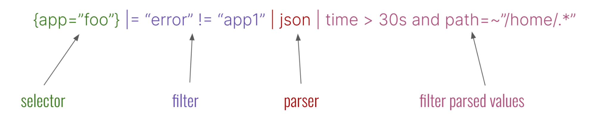 Loki includes a query engine capable of deserializing json, parsing logfmt, or pattern/regex matching the patterns in your log lines. This allows you to add structure to your logs at query time, which means you can filter, aggregate, graph, summarize, etc. all of your content regardless of the format it’s in.