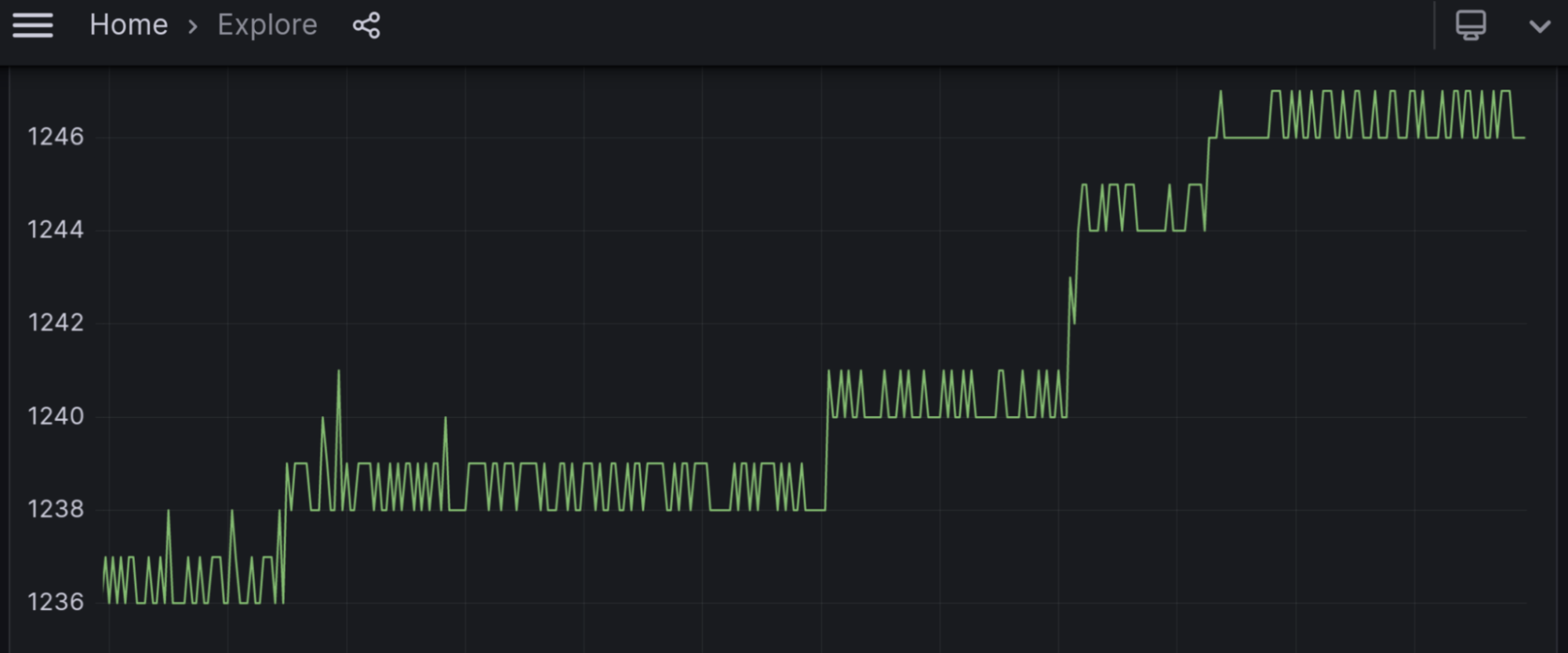 Long-running builds had not been a problem until recently, which we knew may be a symptom. Timeouts were set on build requests, so we knew at least one trigger for the struggling server. Treating this symptom ensured jobs that were stuck didn’t run indefinitely or consume resources. When we fixed the goroutine leak on the buildworker, we saw that there may be spikes, but the chart line was not always stepping up: