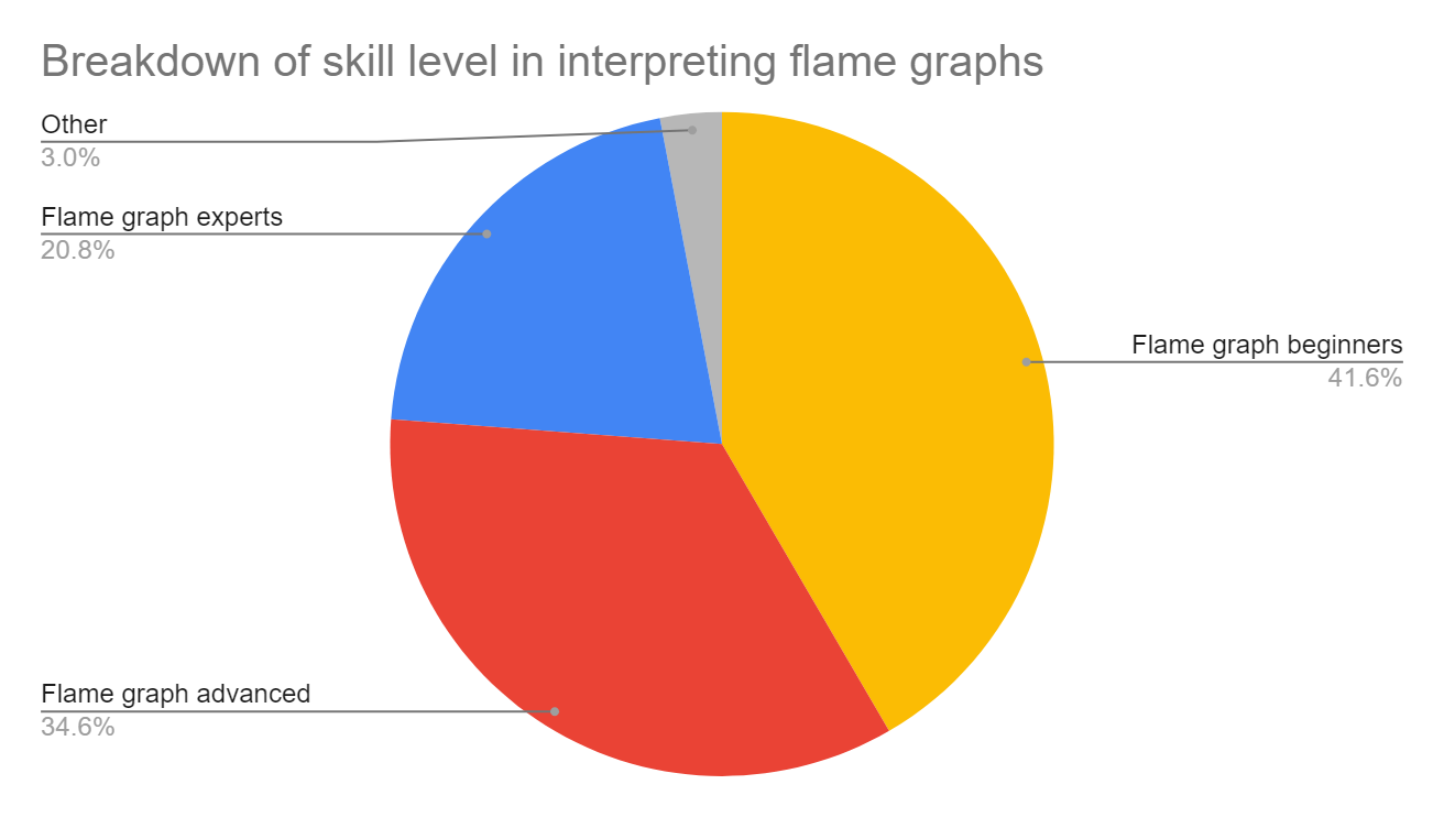 - Flame graph advanced users: 70% passed. Their responses varied; some were spot on, while others didn’t dig far enough into the flame graph to identify the root cause.
