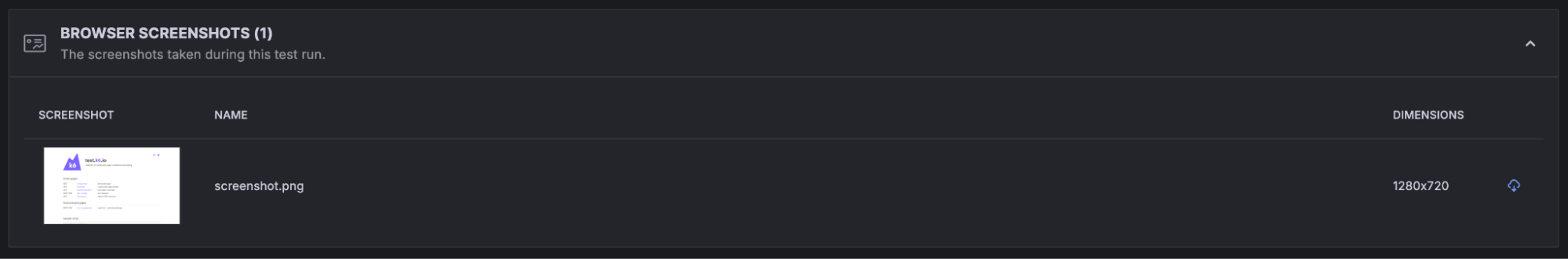Screenshots are crucial to understand the end-user experience fully. With browser tests in Grafana Cloud k6, you can capture screenshots during test runs, allowing you to inspect page states visually. So, you can visually assess how your application looks and behaves at any point during the test, making it easier to identify UI glitches, rendering problems, or unexpected behavior.