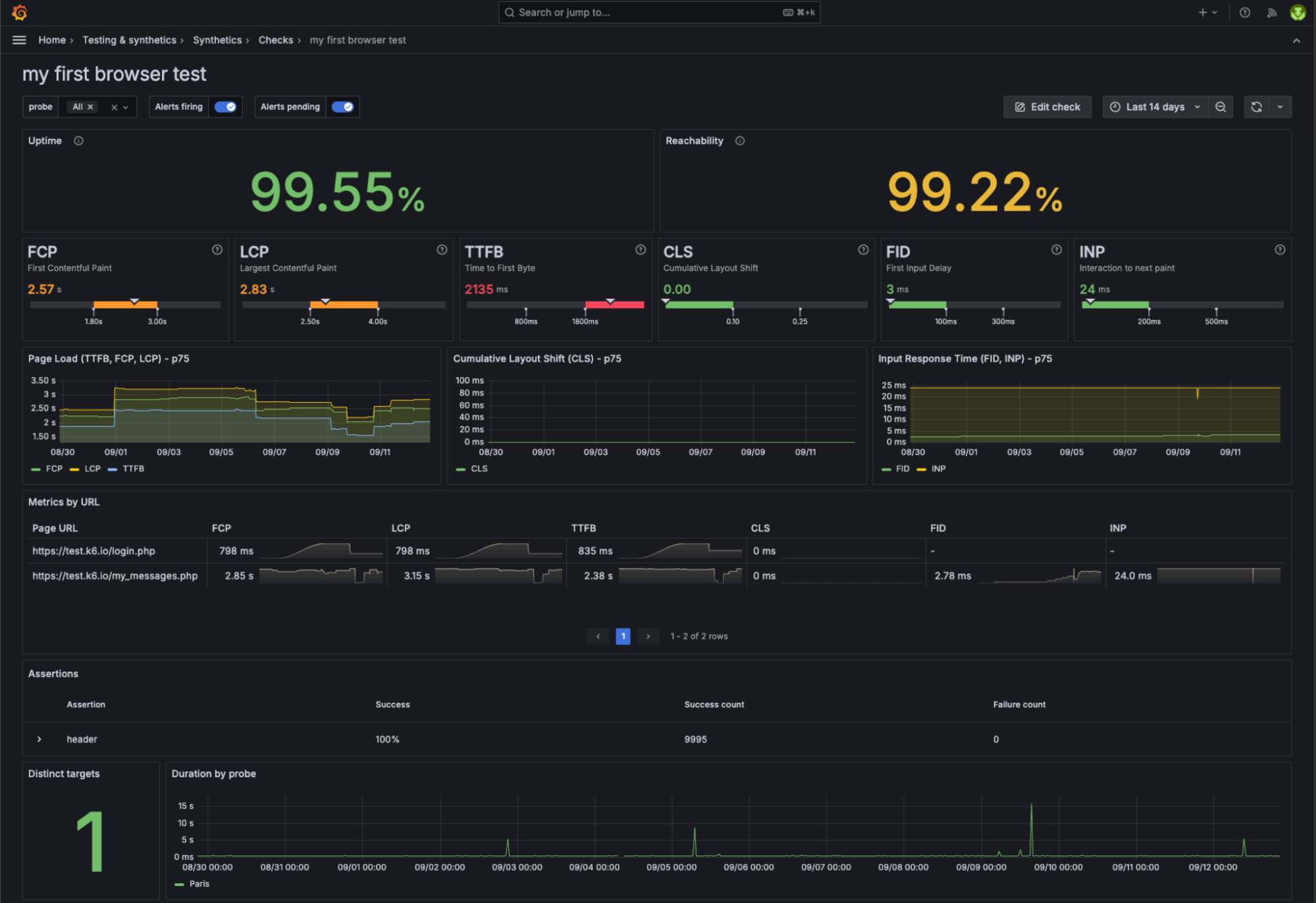 With browser testing in Grafana Cloud k6, you gain a holistic view of your website’s health, making it easier to optimize for a faster and smoother user experience.