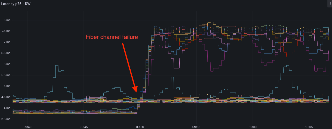 This setup is incredibly powerful. In one of my use cases, it has been able to detect a network issue with Grafana Mimir’s Alertmanager and confirm it with our Grafana operational dashboards. One of our teams was reporting slowness in their applications. From our point of view, everything was working as expected. Based on what we could see from the database point of view, all queries were performing as fast as usual, which means that the issue was between the applications and the database. Indeed, network equipment and cable failure happen even in the cloud. This was the case at that time: a faulty fiber channel was causing traffic to be routed differently, which in turn caused a latency increase of 4ms. Wow, a 4ms impact can be detected by synthetic monitoring.