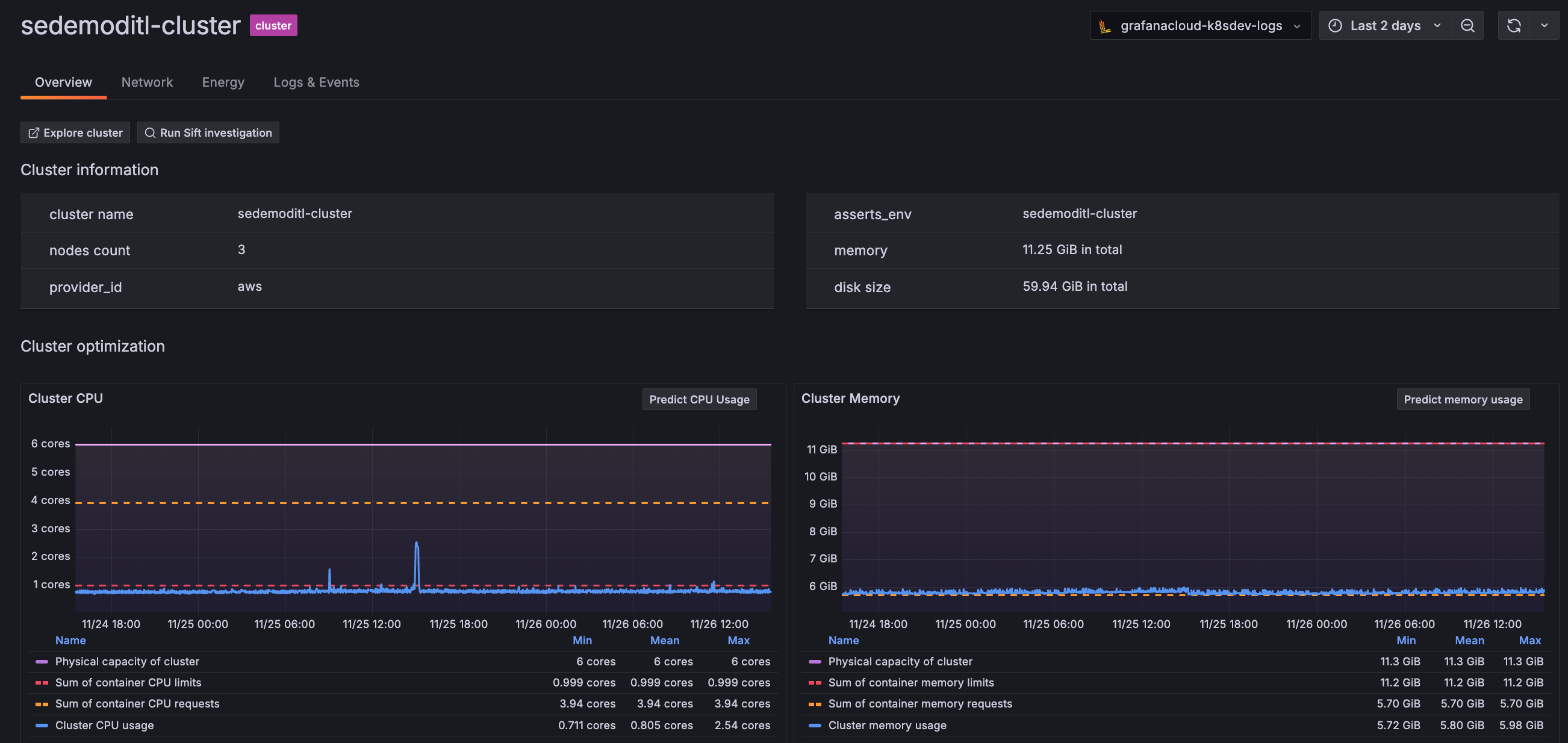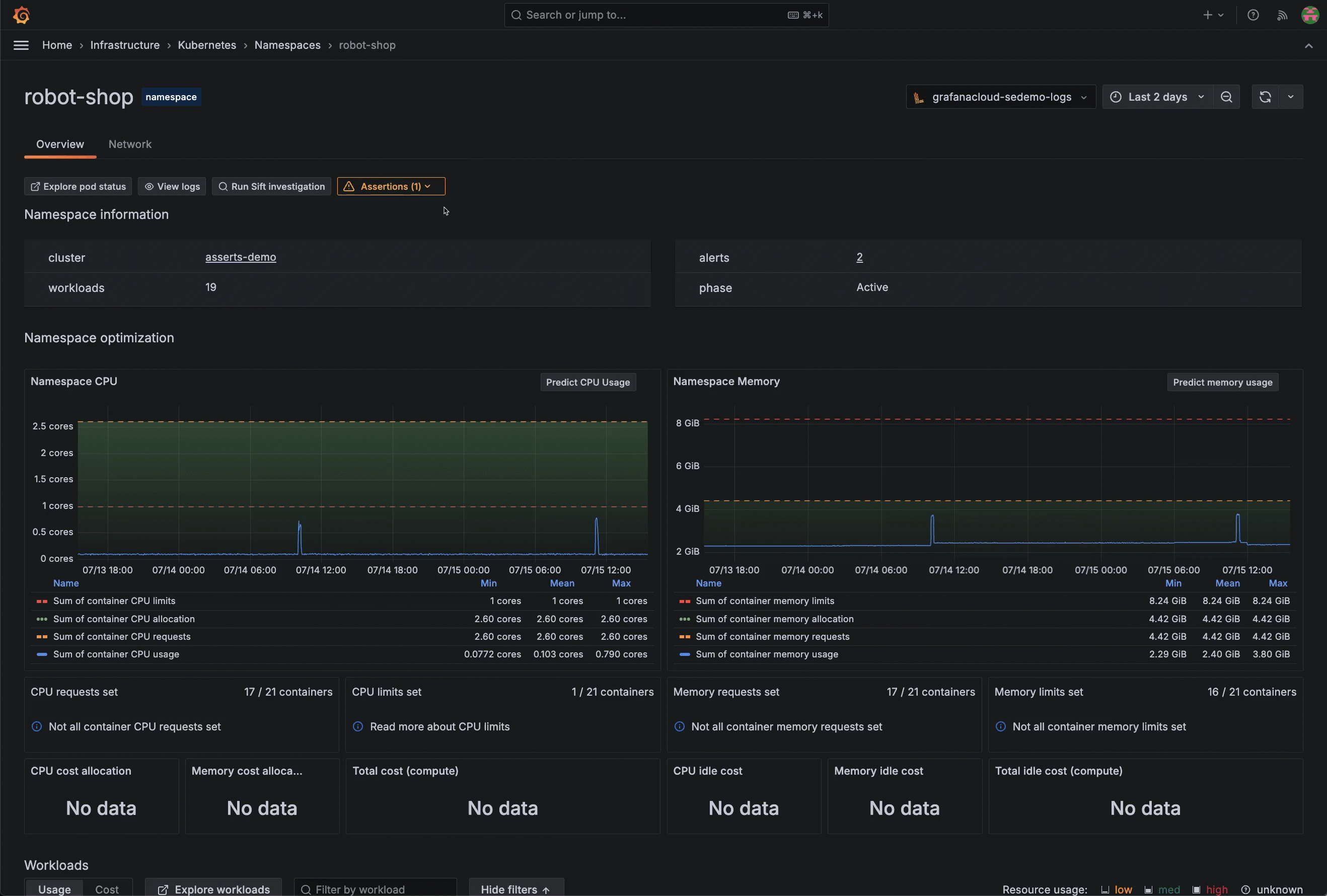With Grafana Play, you can explore and see how it works, learning from practical examples to accelerate your development. This feature can be seen on the Network tab of this namespace details page.