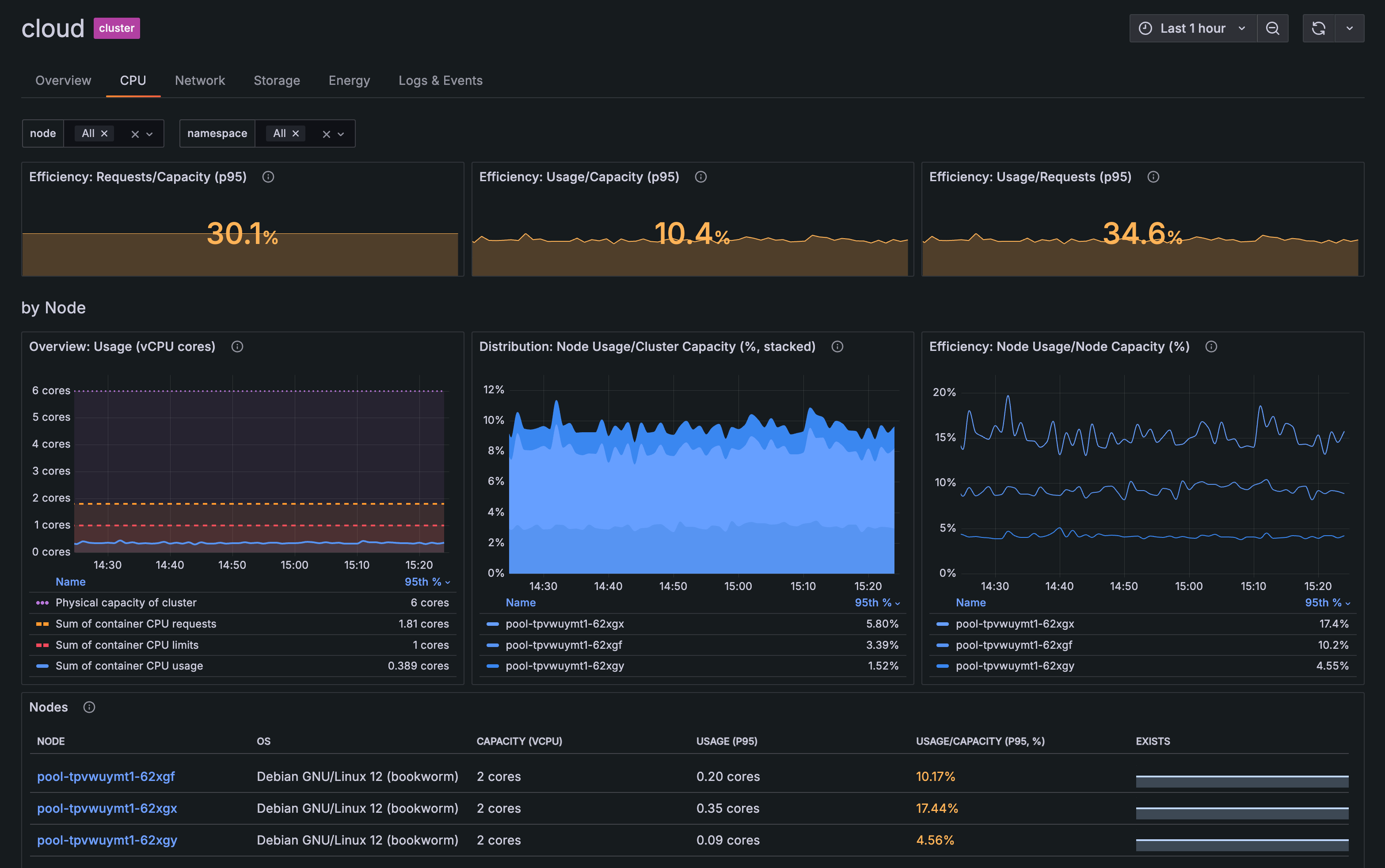 • Evaluate the health, efficiency, and cost of Kubernetes infrastructure components.