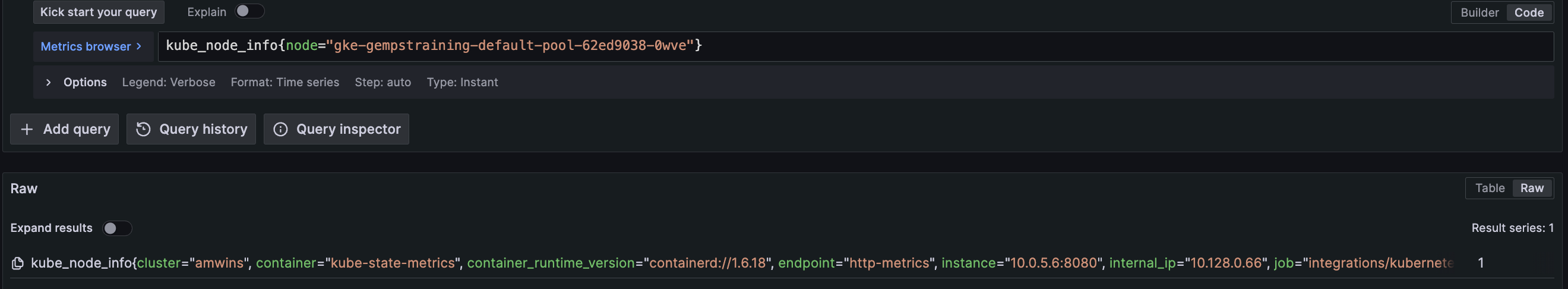 For any panel, you can open Debug Metrics to see the metrics used for the panel.