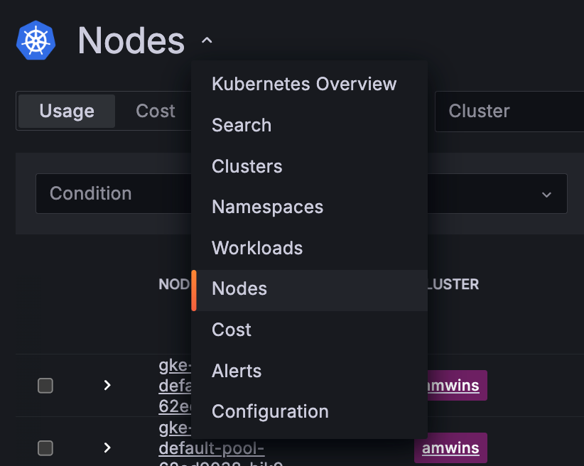 On the Cost page, use the Overview and Savings tabs to gain an understanding what Kubernetes is costing and how you can save. You can see the cost of each item in any list view as well as on the detail pages.