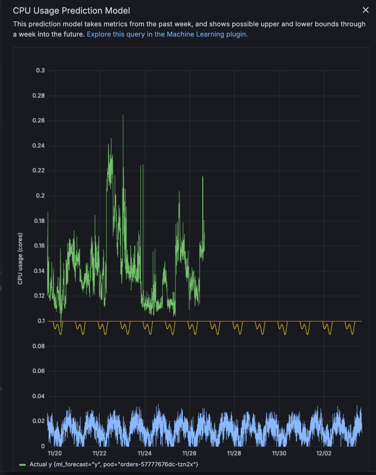 CPU and memory prediction can help you ensure resources are available during spikes in usage, as well as help you decrease the amount of unused resources due to over provisioning. To use prediction tools, first enable the Machine Learning plugin.