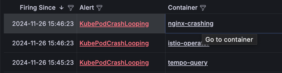 1. Sort the Firing Since column of alerts to focus on either the most current or the oldest alerts that are firing.