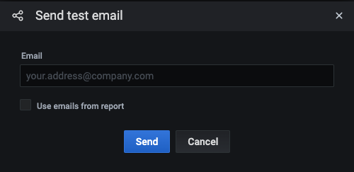- Send test email to verify that the whole configuration is working as expected. You can choose to send this email to the recipients configured for the report, or to a different set of email addresses only used for testing.