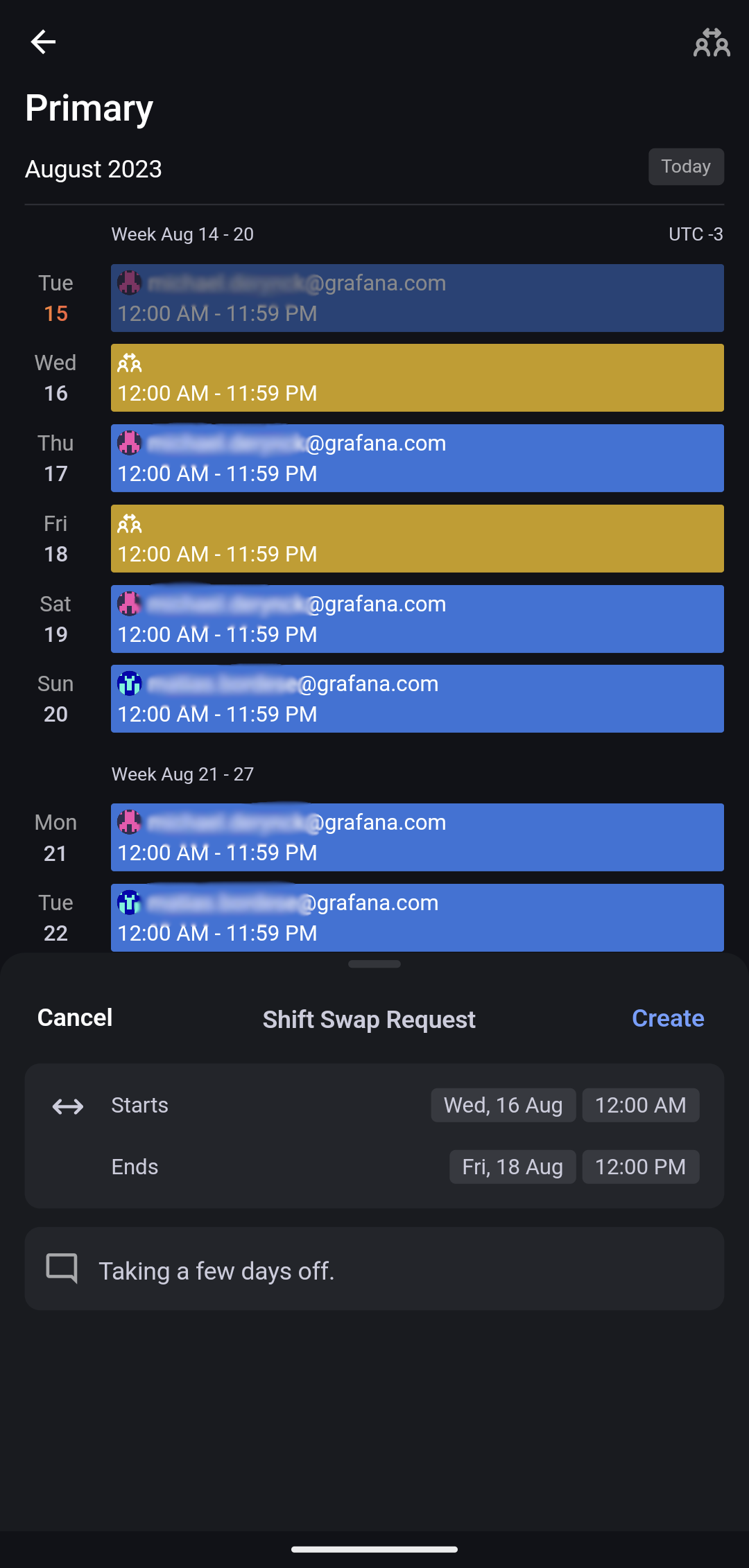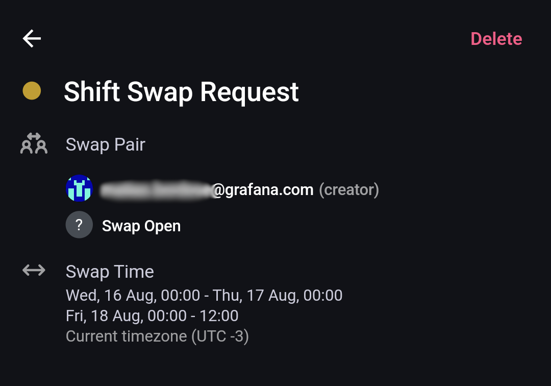 Shift Swap Request generation, simply add #grafana-oncall-ignore to the Out of Office event’s title.