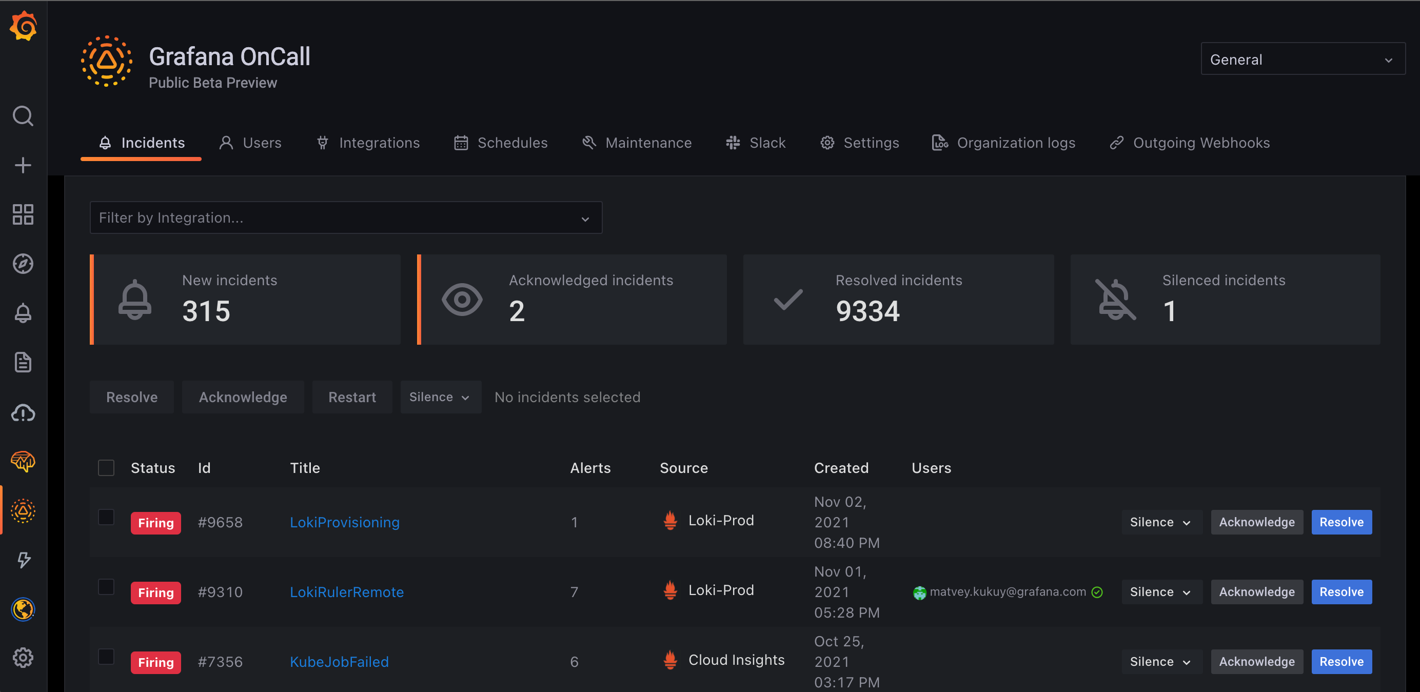 With Grafana OnCall, teams will no longer have to manage separate alerts from Grafana, Prometheus, and Alertmanager, lowering the risk of missing an important update while also limiting the time spent receiving and responding to notifications. OnCall is easily integrated into Grafana Cloud deployments and works with existing alerting sources and monitoring tools, so teams can get up and running quickly and easily.